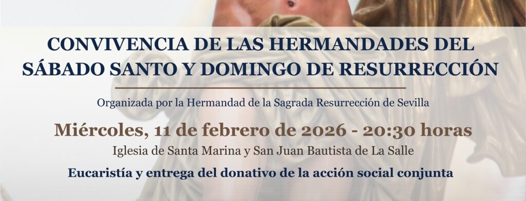 El próximo miércoles 11 de febrero de 2026 nuestra Hermandad será la encargada de organizar la convivencia de hermandades del Sábado Santo y Domingo de Resurrección. El encuentro comenzará a las 20:30 horas con la celebración de la Eucaristía en la Iglesia de Santa...
