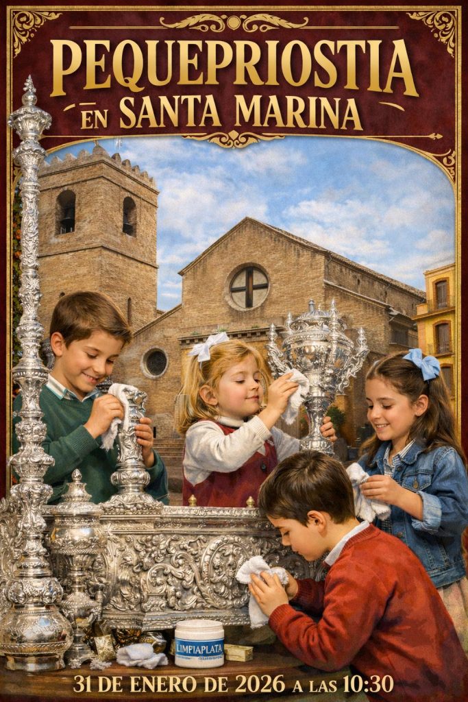 La Priostía ha organizado para el próximo sábado 31 de enero una jornada de limpieza de enseres dirigida a los más pequeños de nuestra Hermandad. La actividad se llevará a cabo de 10:30 a 13:30 horas y el punto de encuentro será la casa hermandad (calle Santa Marian, 3).